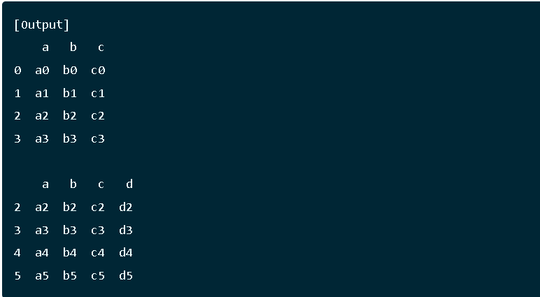 df2 = pd.DataFrame({'a':['a2','a3','a4','a5'],